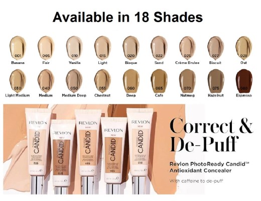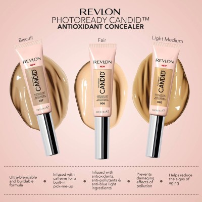 - Corrector Candid PhotoReady Revlon, 60 Deep, con anticontaminación, antioxidantes, sin parabenos, ftalatos ni fragancias, 10 ml