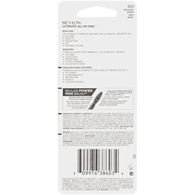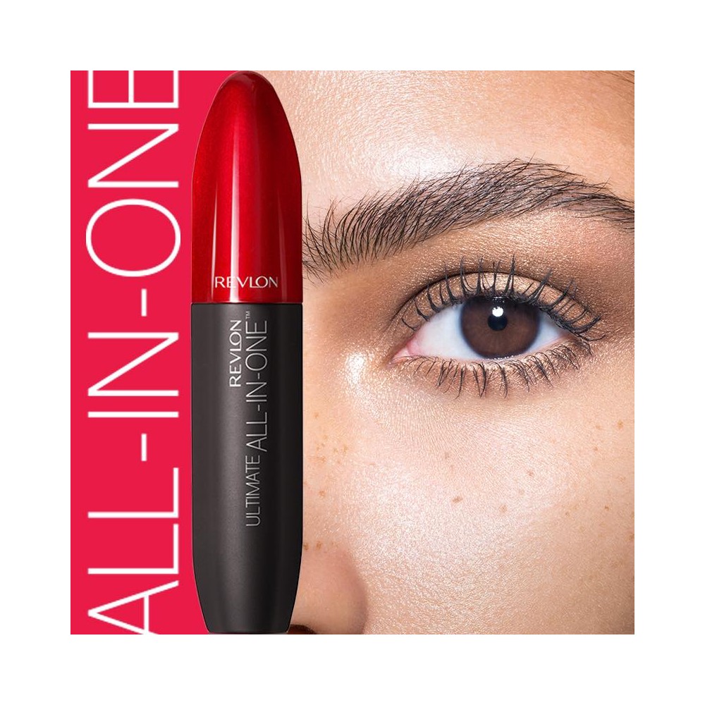 Máscara ALL-IN-ONE Ultimate Revlon 551-Blackest, la cual promete volumen, longitud, definición, levantamiento e intensidad 8.5ml