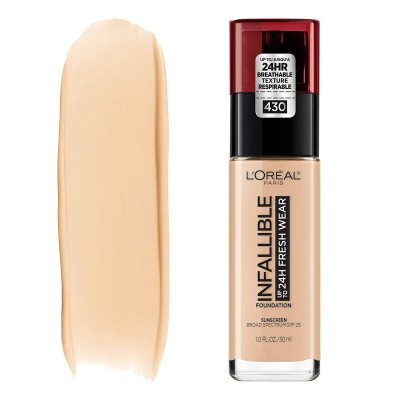 - L’Oréal Paris Base Infalible Nº 430 Ivory Buff, 24 horas Fresh Wear, cobertura ligera y transpirable 30 ml (Loreal)