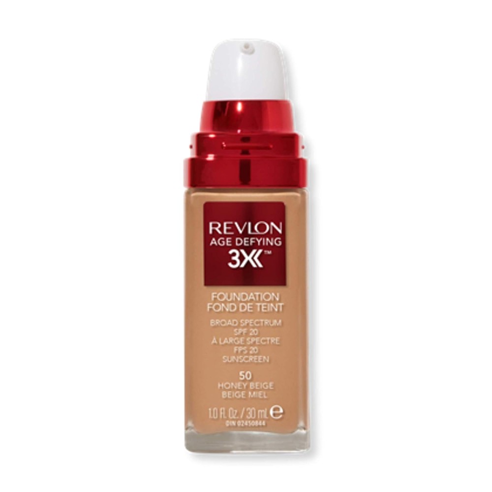 - Base de Maquillaje Revlon Age Defying 3X, 50 HoneyBeige, Reafirmante y Antienvejecimiento, Cobertura Media, Acabado Natural 30ml