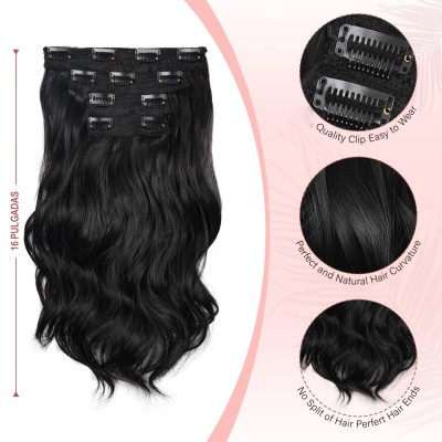 Extensiones con Clips 16" 150g color 1-Negro natural, Cochrane Hair, Cabello 100% Natural, calidad estandar