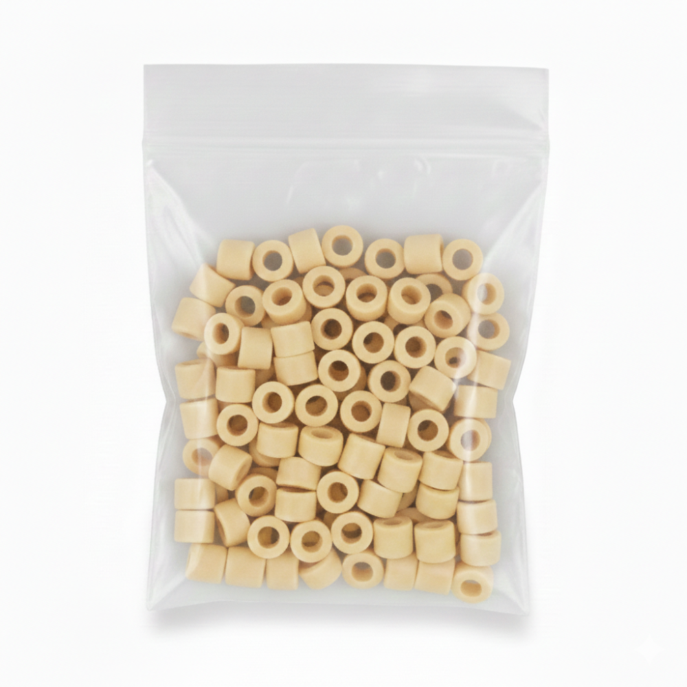 Blister de 50 unidades de micro rings, esenciales para la aplicación de extensiones de cabello con técnica de microring. Proporcionan una fijación segura y discreta sin necesidad de calor ni pegamento.