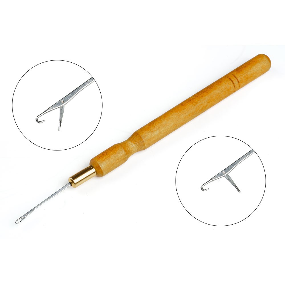 Enhebrador tipo aguja, facilita la colocación de extensiones.