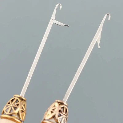 Enhebrador tipo aguja, facilita la colocación de extensiones.