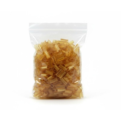 Keratina preformada en forma de uña, color rubio, en paquete de 20 gramos. Ideal para extensiones de fusión, se derrite y une el cabello de forma segura y discreta, perfecta para cabellos rubios.