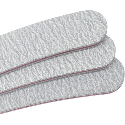 Blister de 50 unidades de limas "Zebra Boomerang" con doble grano 150/180. Su forma curva ergonómica facilita el limado alrededor de la cutícula y las zonas de difícil acceso. Ideal para dar forma y refinar en acrílico y gel.