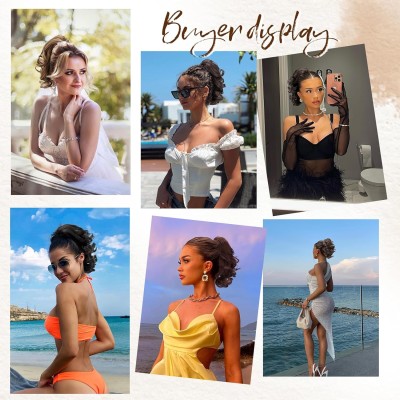 - Moño Cola de caballo (castaño oscuro) corta con clip de pinza, 9 pulgadas, clásicas, sueltas, rizadas, onduladas (Honey String)